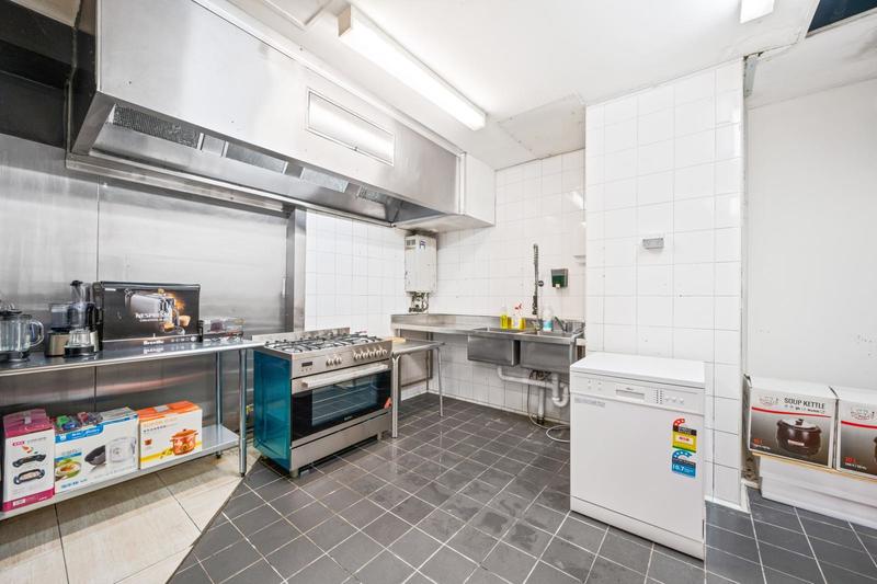 = Commercial kitchen set up including exhaust, grease trap and food preparation area